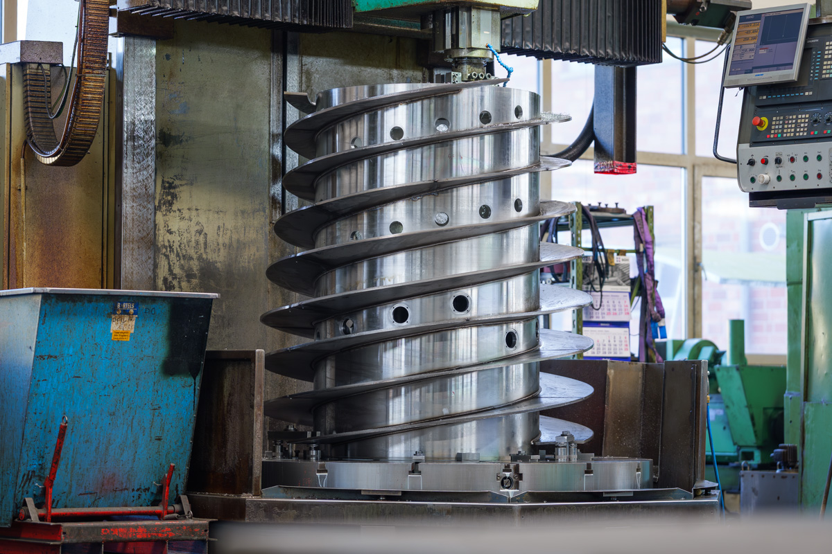 Wir fertigen unter anderem Schnecken, Siebtrommeln, Trommelmäntel, Dekantertrommeln und weitere rotierende Bauteile im Umfeld der Industriezentrifuge.
